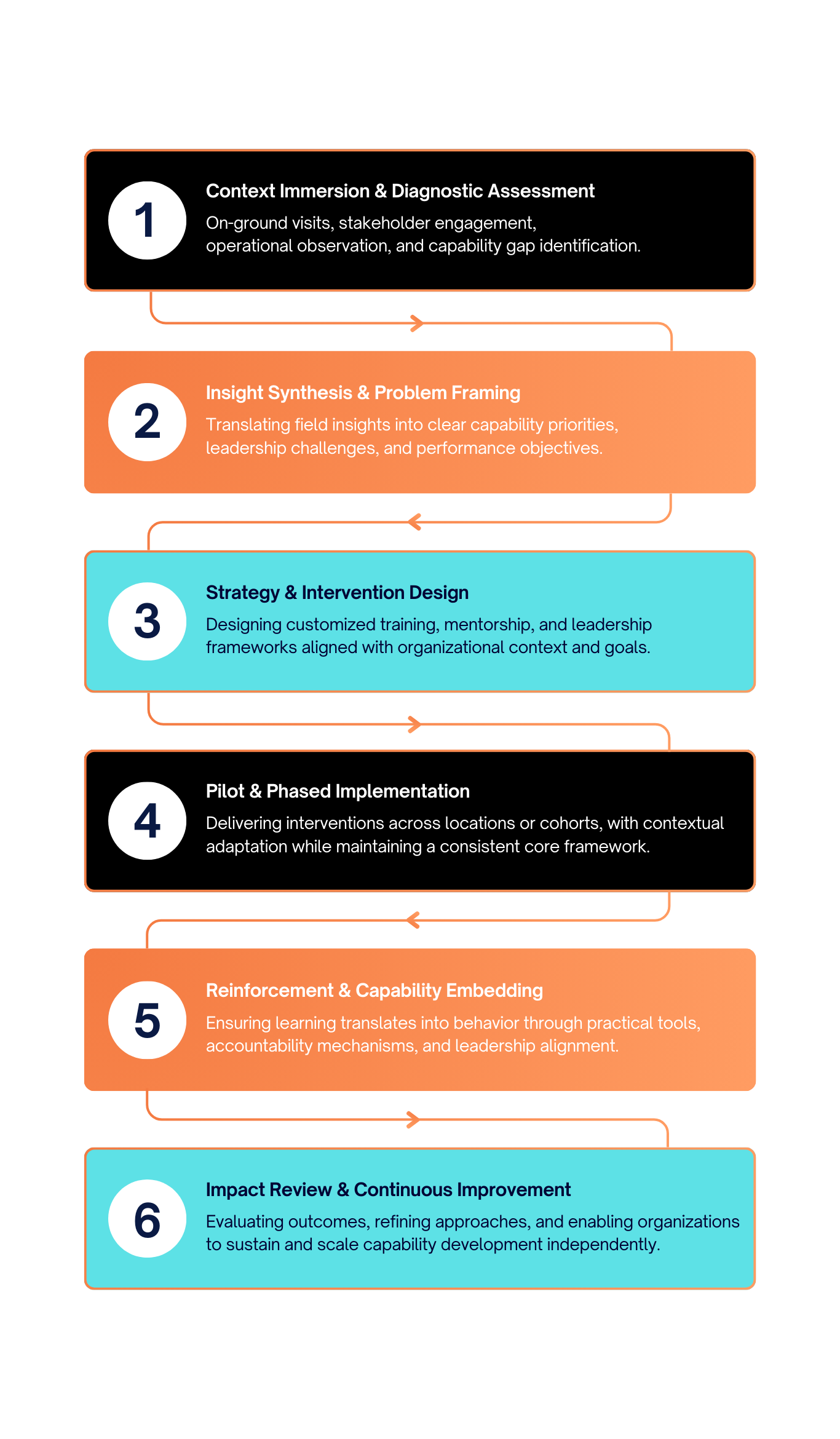 Our methodology follows a consulting-led, insight-driven flow, ensuring every intervention is relevant, scalable, and measurable.